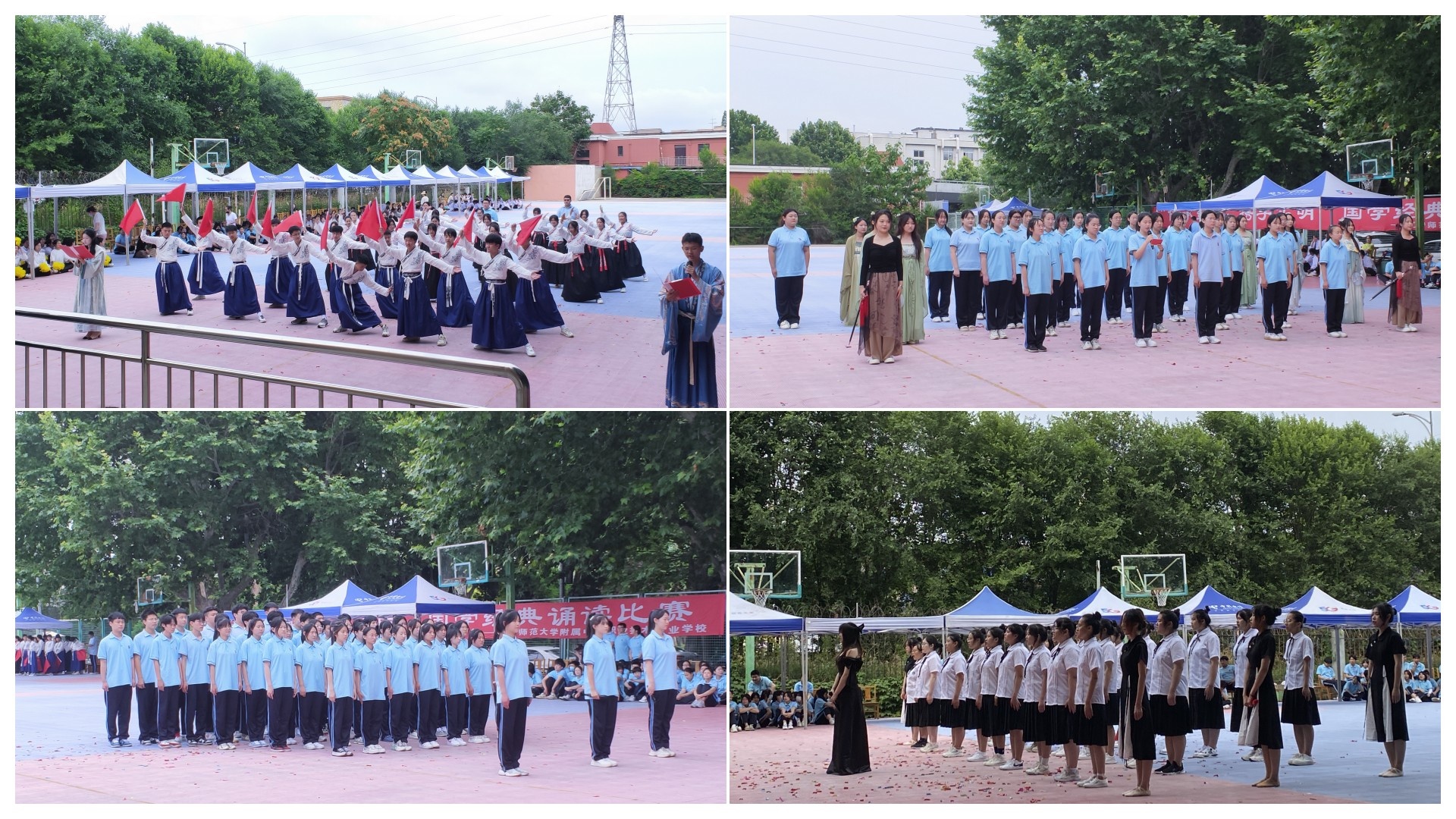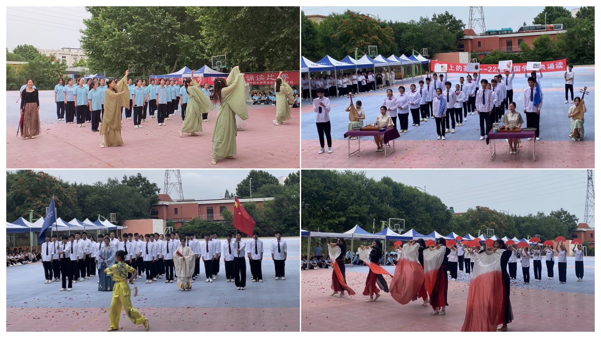 吟经典,诵诗词,是书香校园一道最美的风景。各班通过创新表现形式,将国学诵读与情景剧、手势操、舞蹈等相融合,链接诗词歌赋,充分展现了辽师中专学子昂扬向上的精神风貌和国学经典的无穷魅力。《将进酒》气势磅礴、《木兰辞》英姿飒爽、《舌尖上的茶香》安然恬静、《水调歌头》清丽婉转……千年流传的文化古韵,伴随着琅琅书声,为校园增添了浓厚的文化韵味。